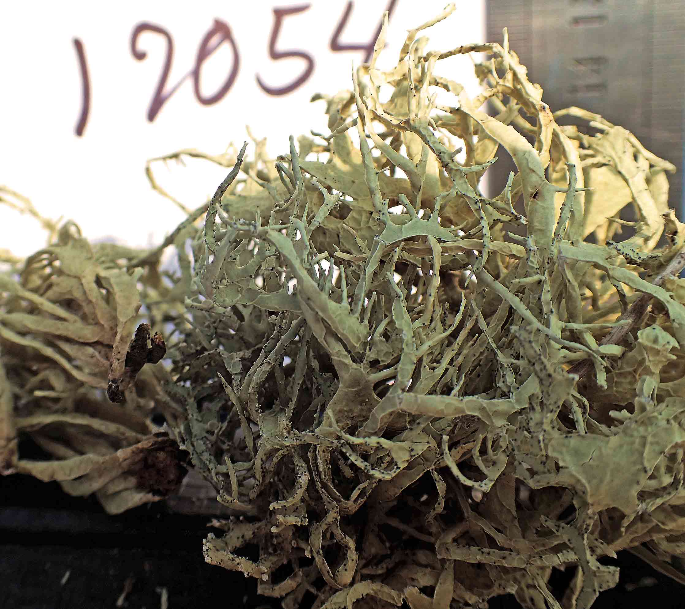 Niebla effusa is a species of fruticose lichen endemic to the peninsula of Baja California, occurring along the Pacific Coast from near Punta Santo Domingo north to Colonet. The species is recognized by the intricately interwoven rigid prismatic branches with linear and flattened parts at various intervals that are more conspicuously dilated and arched near apex where appearing also short secund branchlets, and by containing salazinic acid without triterpenes. Additional lichen substances of fumaroprotocetric acid or a depside, which are rare chemotype combinations with salazinic acid, are also recognized to be variation of this species that may represent hybrids. Related salazinic acid species, which often occur with N. effusa, are Niebla josecuervoi distinguished having longer comb-like branchlets more near base than apex, and Niebla arenaria that differs by terminal antler-like branchlets. Niebla flabellata, which is found more on rock faces and small stones along beaches, differs in the smaller brittle thallus having tufts of basal branches mostly flattened throughout. Also its dilated parts appear more irregular in occurrence from base to near apex, and more torn or lacerated along margins rather than branch-like. Niebla effusa is a dominant lichen of terricolous lichen communities, constituting much of the ground cover in a transitional coastal chaparral scrub on mesas between Colonet and Punta Baja. Associated terricolous species include N. arenaria, N. josecuervoi, N. juncosa var. spinulifera, N. palmeri, and N. pulchribarbara. The latter two are relatively rare, and distinguished by their secondary metabolites, sekikaic acid, and protocetraric acid, respectively, in contrast to salazinic acid in N. effusa. In this region, Niebla species seem to grow more on soil than rock because of the strong coastal wind as evident by the wind-swept appearance of the vascular flora. The terricolous lichen community is in further contrast to the rock dwellers of the California chaparral and to the boulder and pebble Niebla communities further south, and to the sporadic occurrences of sand Niebla species found along bays, near beaches and on mesas. Although Niebla effusa often occurs with N. arenaria, it extends further inland in contrast to N. arenaria often found more along beaches. Another salazinic acid species, Niebla josecuervoi grows more on rocks than on soil. Niebla effusa may prove to be the largest lichen on the planet in terms of weight and size. Not only can it spread on the ground more than 1 m in diameter but it may weigh more than 1 kg. An example of its size is shown in Spjut (1996, Plate 4C). Species of Usnea, and other pendant lichens that may drape more than 1 m from tree branches do not produce the weight found in species of Niebla. This judgment is based on collecting samples of numerous species across the U.S., and Baja California for antitumor and anti-HIV screening. Niebla effusa attains its large size by its basal branches not always being confined to a holdfast; they also creep along the surface rather than grow upright. Niebla effusa is not a tumble (“vagrant”) lichen—one that moves about as result of being taken up by the wind—as implied by Bowler and Marsh (2004), in contrast to N. arenaria and N. limicola that often grow loosely on sand near beaches where there is less vegetation and where they can be more easily dislodged by wind. Occasional saxicolous variants of N. effusa are recognized to arise from a holdfast, or develop on rock as shown above; however, they may later spread beyond the rock (also evident in the same photo); these seem to occur more in the southern part of the range in Baja California. DNA phylogeny did not separate phenotypic N. effusa from other related species; yet, five specimens identified by this name represented three species according to discrimination by BPP, in contrast to four species for five specimens of N. josecuervoi (Spjut et al. 2020). A total of nine species were discriminated by BPP for 30 specimens with depsidone chemotypes. Although the depsidone species can be discriminated by statistical analyses of DNA sequences, defining them by their morphology is problematic because they are not clearly separated in the phylogeny except for three as related to their occurrence at the type locality, or nearby; these are the N. spatulata species complex, N. limicola, and N. flabellata. Other depsidone species sampled near their type locality besides N. effusa are N. josecuervoi, and N. marinii. Niebla effusa appears to hybridize frequently with N. palmeri and N. juncosa. Their phylogeny may appear in any of the three chemotype clades. Niebla pulchribarbara is also suggested because protocetraric acid is relatively rare, the chemotype for the species.