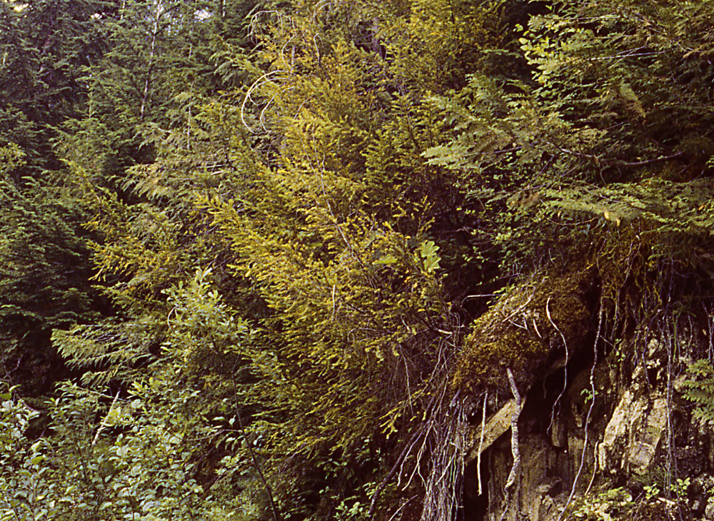 narrow ravine, occurring with Douglas fir, western red cedar, maple